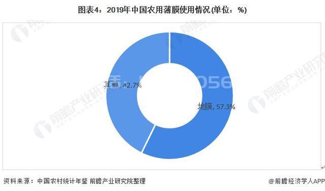 2019年我国农用塑料薄膜使用仍以地膜为主,地膜使用量占比为57.27%