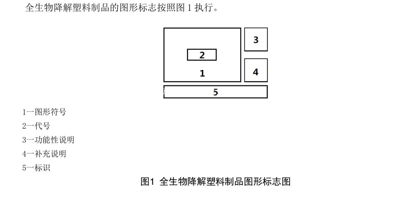 《全生物降解塑料制品通用技术要求》对全生物降解塑料制品的外表标识也有着严格的要求,一个标准的产品需要有图形符号、代号、功能性说明、补充说明、标识等信息。