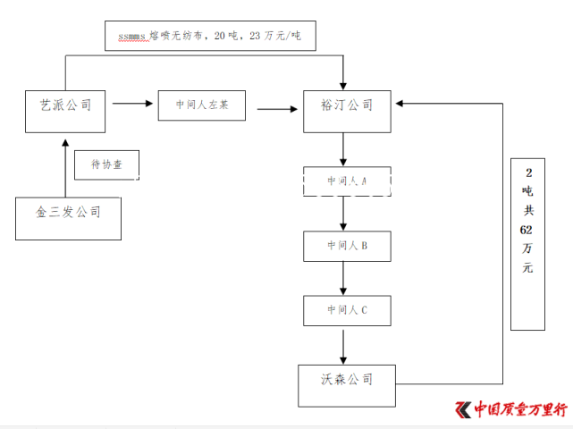 上海裕汀通过中间人从苏州艺派智能科技有限公司购入“ssmmms熔喷无纺布”,检测报告也由该公司提供,其称产品由金三发公司提供(这一部分需进一步核实)。上海裕汀与福建沃森间的合同签订至少存在三个中间人,合同以及报告及双方沟通等均通过中间人完成,双方可能在信息传递过程中存在偏差。