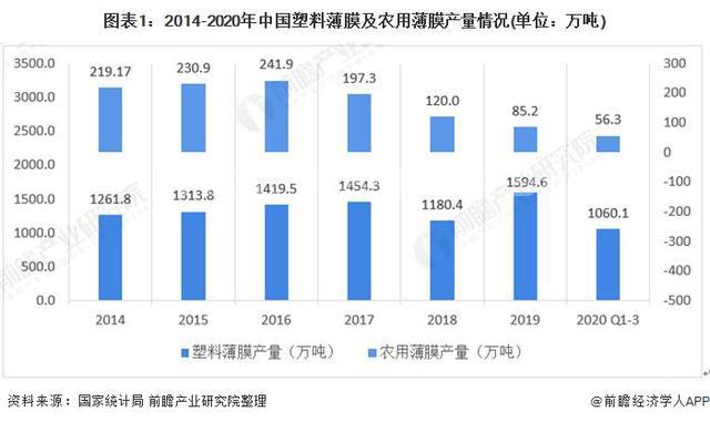我国塑料薄膜产量保持在1000万吨以上,农用塑料薄膜产量呈波动下降态势