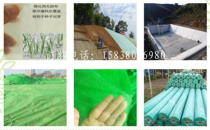绿色绿化无纺布经抗紫外线处理,透气性好,拉力强劲等特点,克重(15g-100g/m )。渗水透气透光,经日晒雨淋后腐烂的环保布状覆盖物。种子喷播于裸地后,在喷播坪面上覆盖一层无纺布,防止水分过快蒸发,并可形成一个温室,起到一定的保温保湿的作用,为种子发芽生长创造较好的条件。另外,无纺布可起到防止小鸟啄食种子的作用。